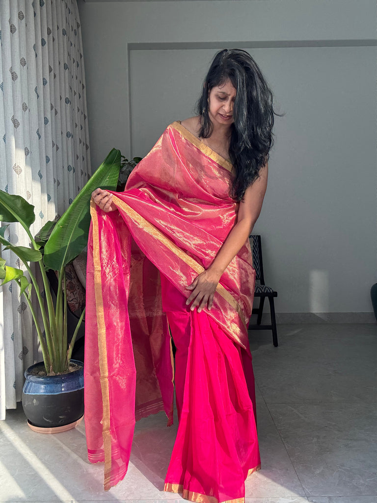 Gulnar - Zari Chanderi Handwoven Saree