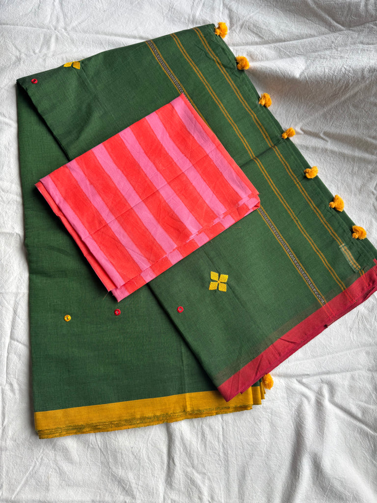 Handloom Pure Cotton Saree With Embroidered Pallu