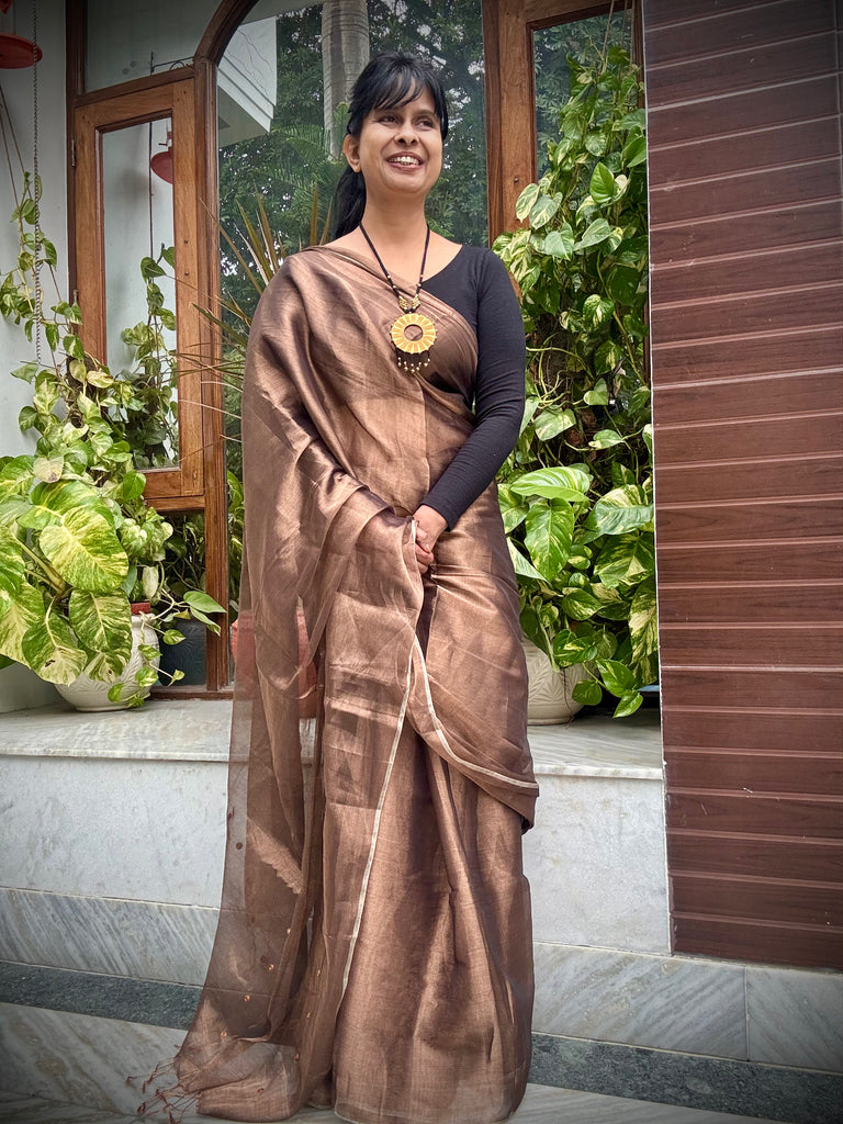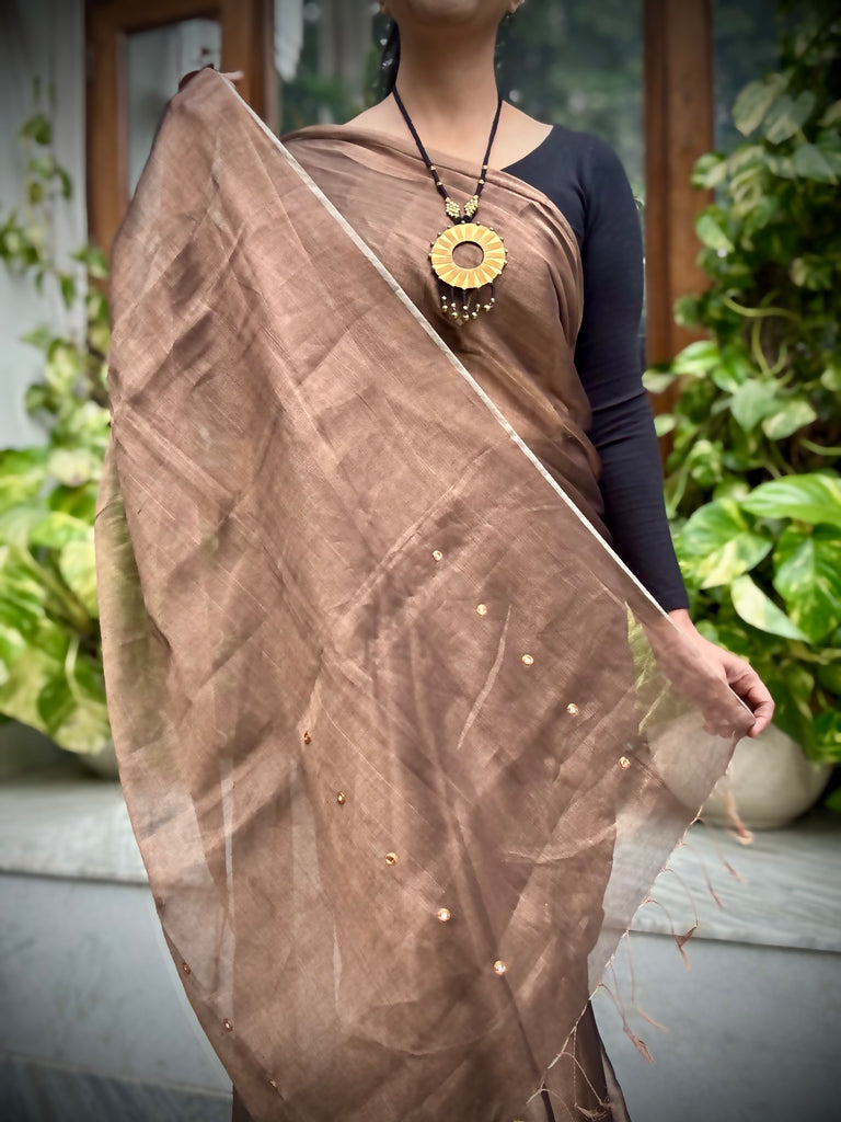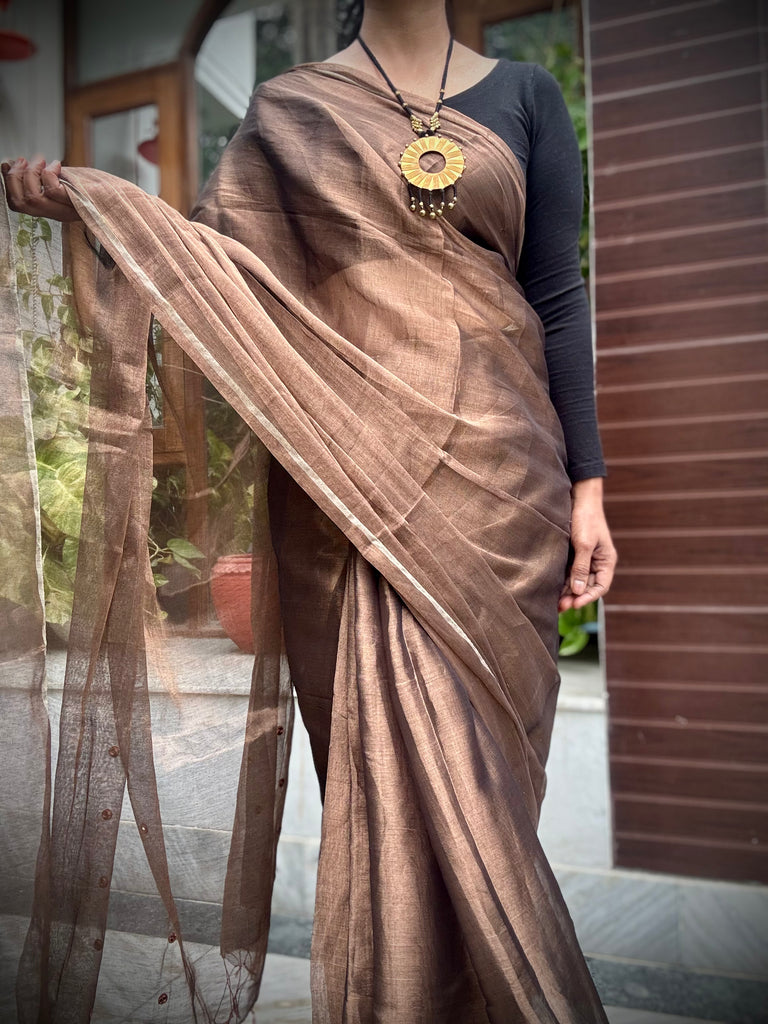 Kanak -Handloom Mul Tissue Saree with Pallu Embroidered