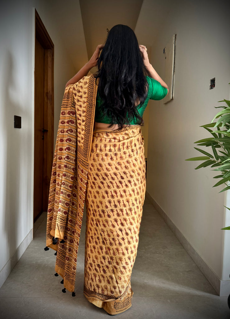 Raamya - Modal Silk Vanaspati handblock printed saree