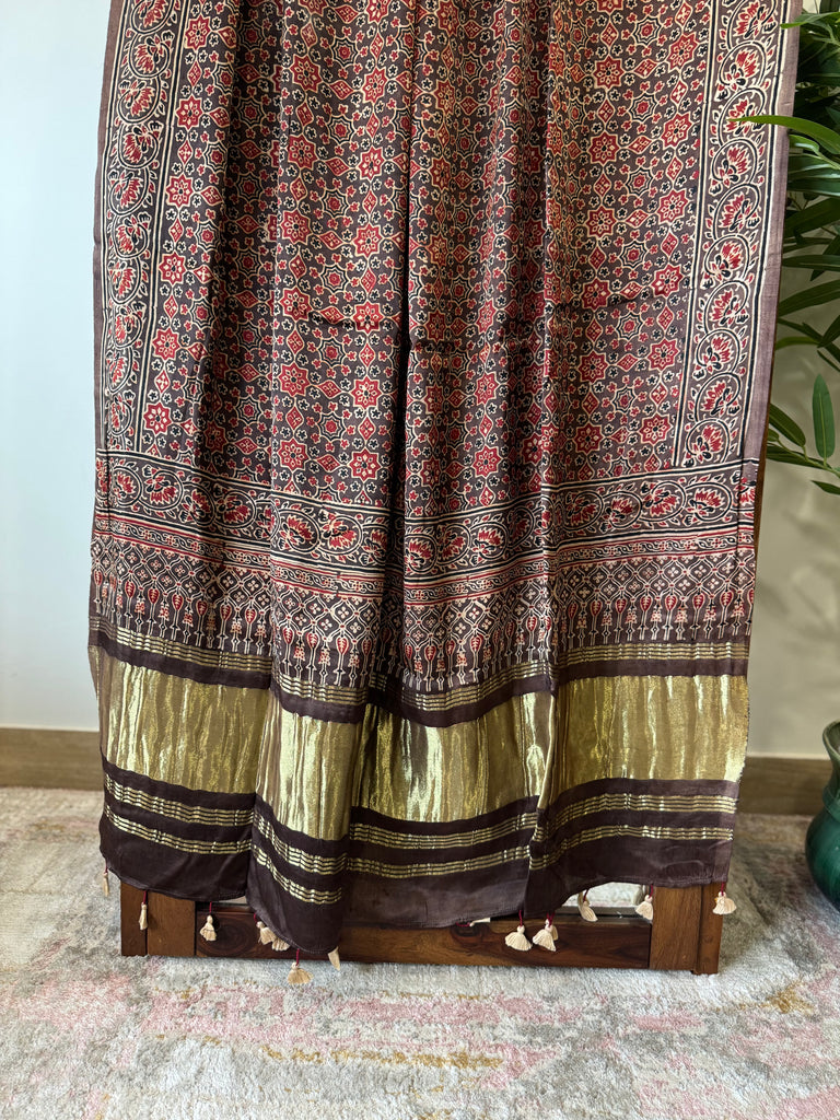 Tissue Pallu Ajrakh Modal Silk Dupatta