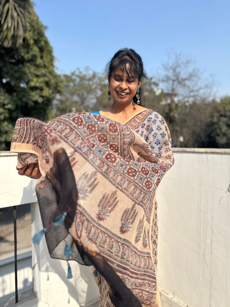 Ajrakh kota doria cotton saree