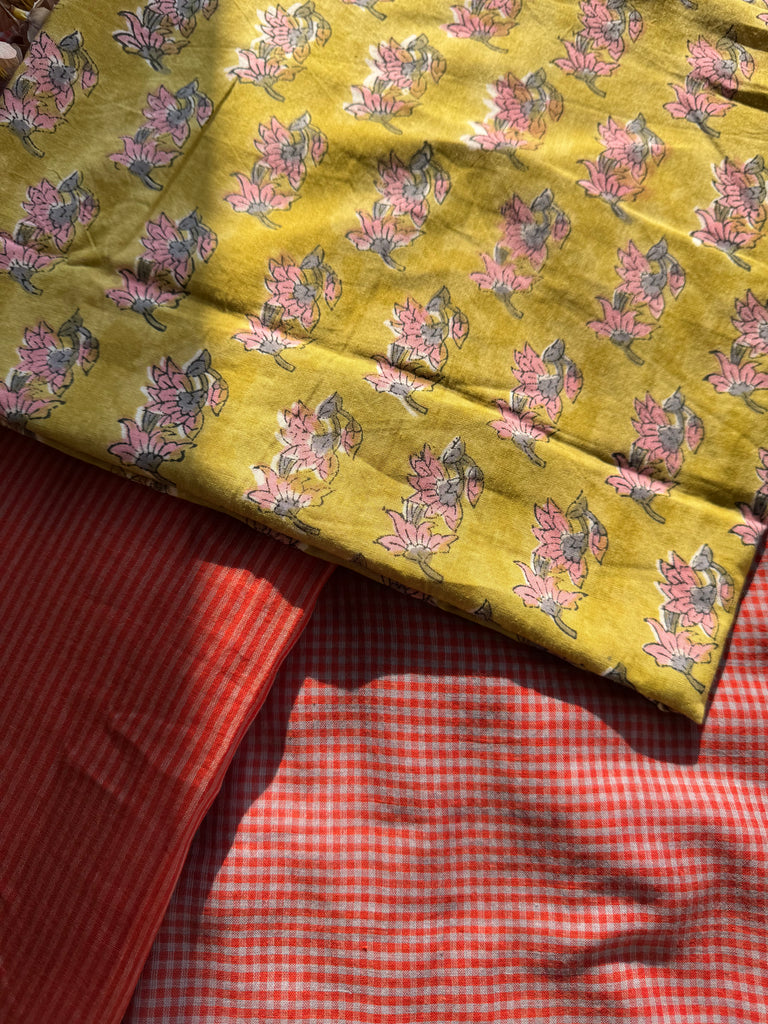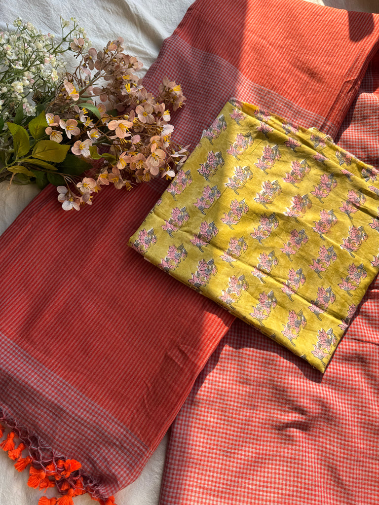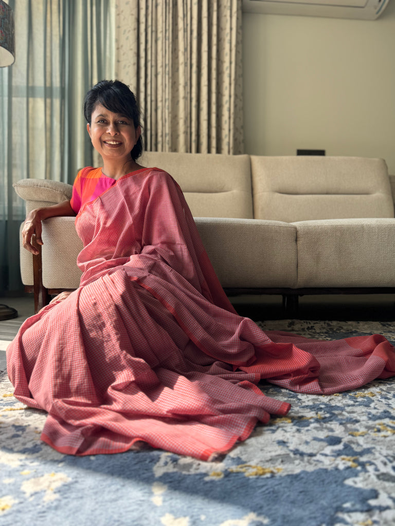 Sukoon Handloom Saree Collection — crafted in an extremely soft, buttery fabric that brings back the comforting nostalgia of the sarees our daadis and nanis wore while gracefully managing their entire day. Light, breathable, and effortless, these sarees carry that same timeless comfort. Each saree is thoughtfully paired with delicate pastel block-printed blouse pieces, adding a refined, contemporary touch — perfect for the modern working woman who values heritage with quiet luxury.