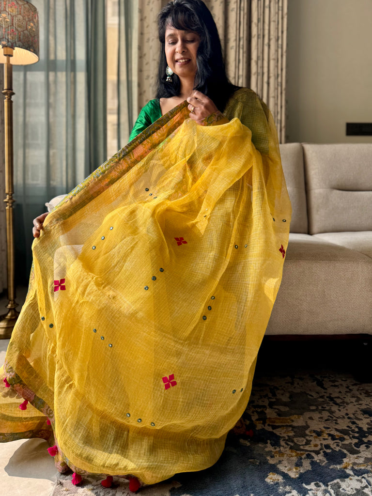 Heavy Embroidered pallu & patchwork border- kota doria saree