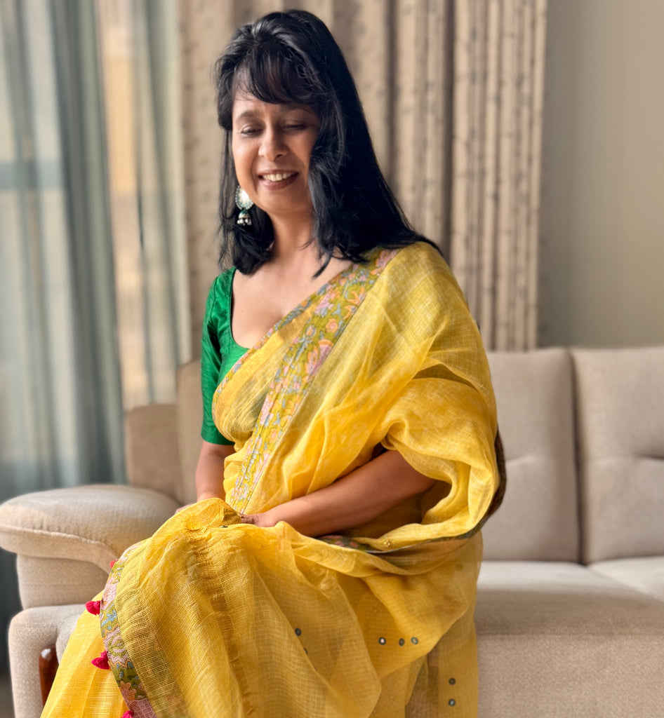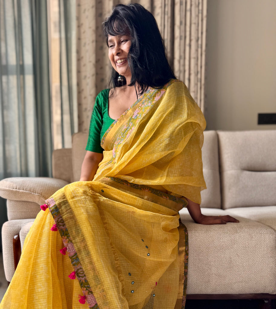 Tassels - saree is accessorised with handmade tassels.