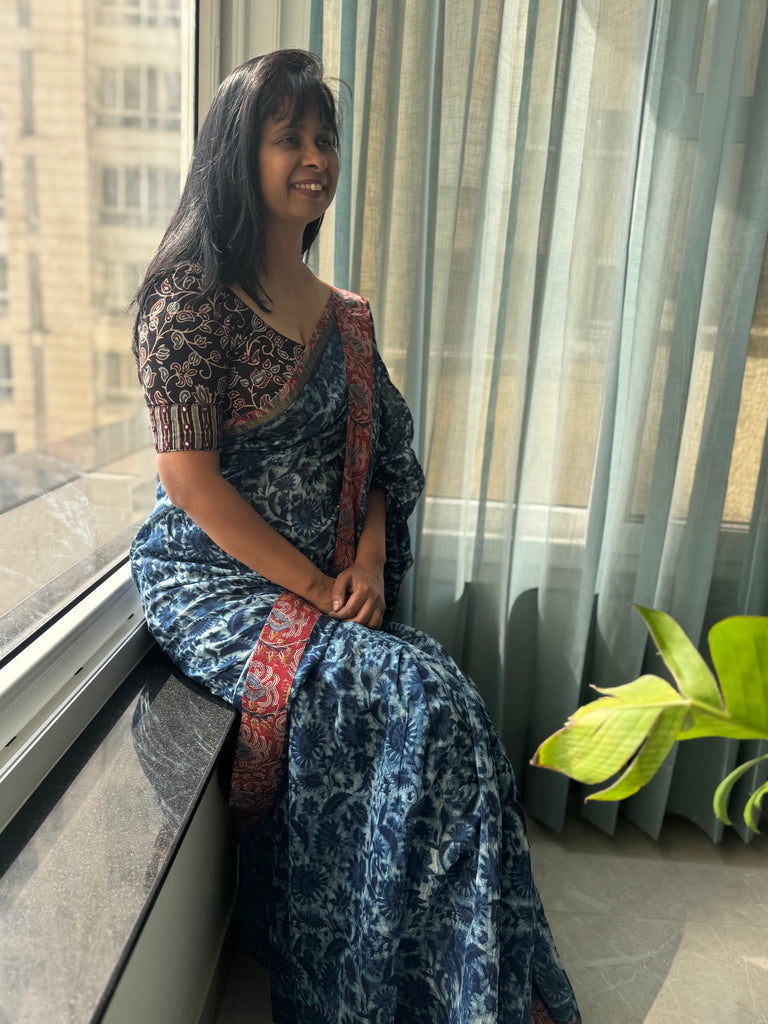 Saree : Enriched with an all-over hand block print, this saree is crafted from Cotton silk fabric and comes with the kalamkari cotton fabric patchwork border.