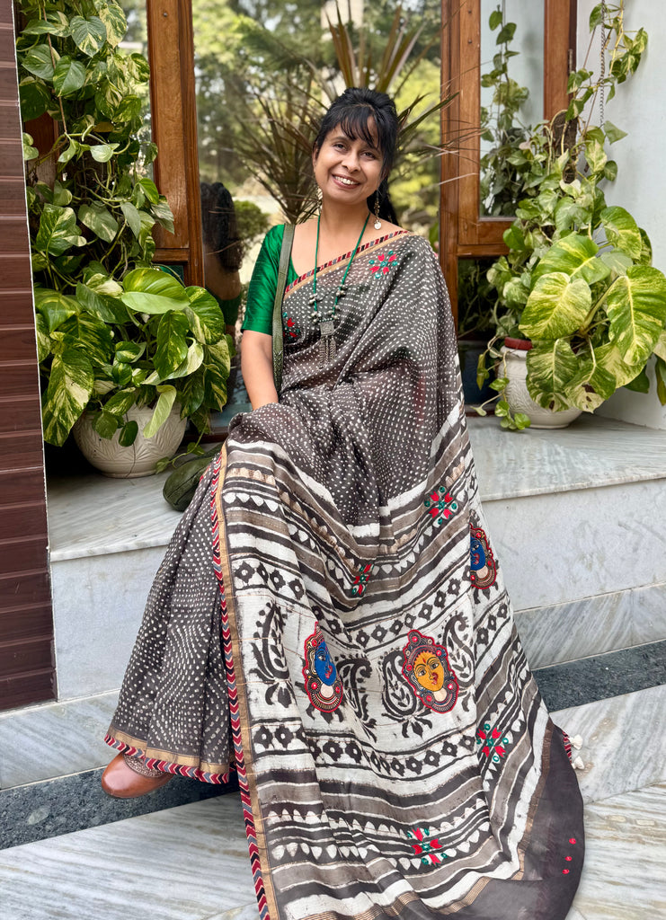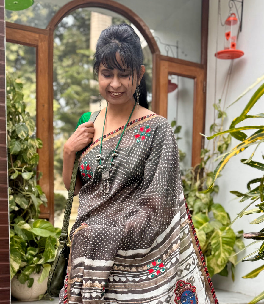 Embroidered Patchwork Pallu- Cotton Silk Block Printed Saree