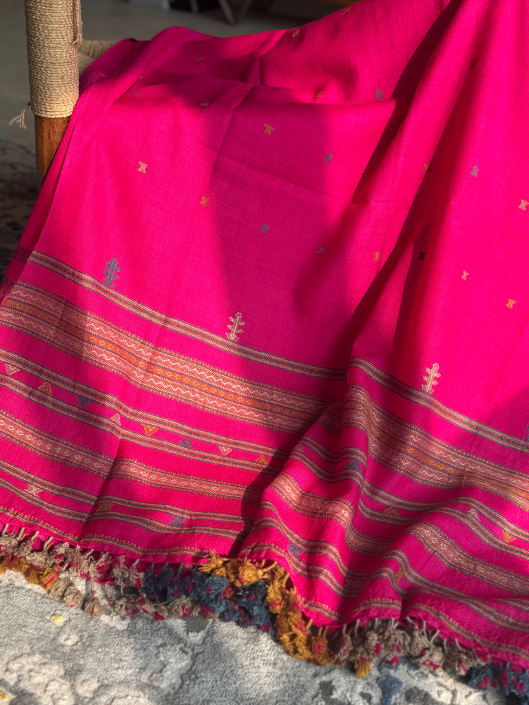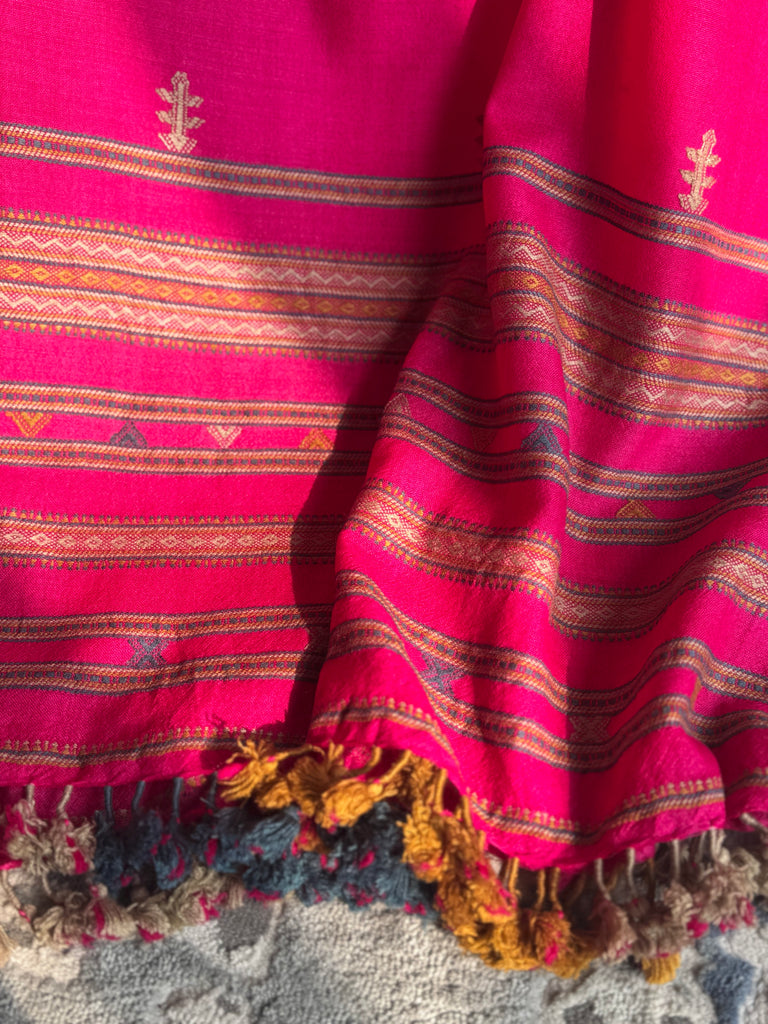 Pink - Kutch Bhujodi Handwoven Merino Wool Shawl, Very Soft