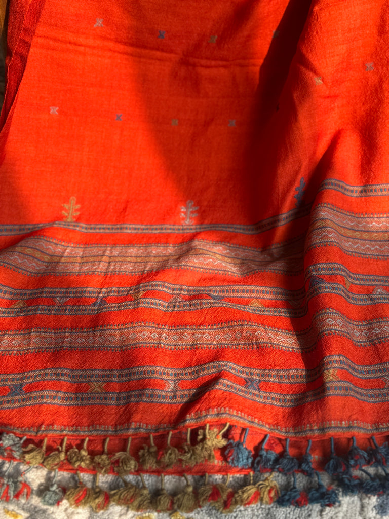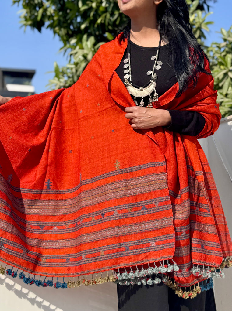 Rust - Kutch Bhujodi Handwoven Merino Wool Shawl, Very Soft