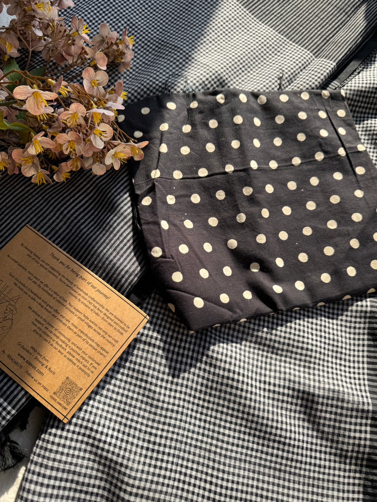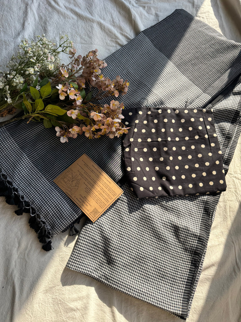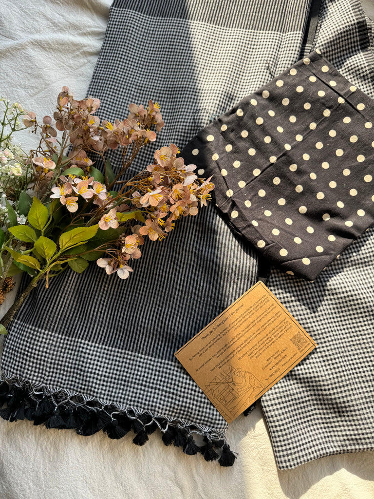 Sukoon Handloom Saree Collection — crafted in an extremely soft, buttery fabric that brings back the comforting nostalgia of the sarees our daadis and nanis wore while gracefully managing their entire day. Light, breathable, and effortless, these sarees carry that same timeless comfort. Each saree is thoughtfully paired with delicate pastel block-printed blouse pieces, adding a refined, contemporary touch — perfect for the modern working woman who values heritage with quiet luxury.