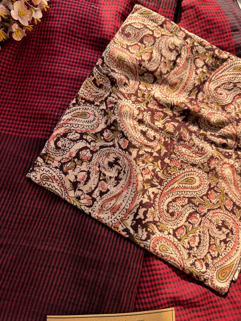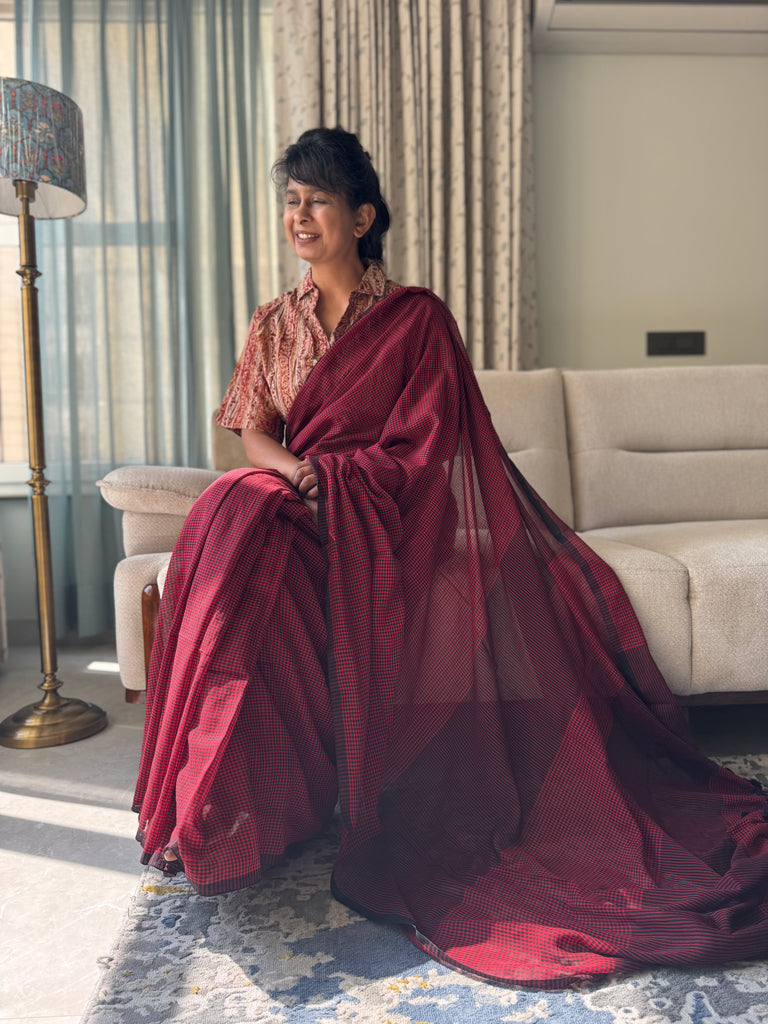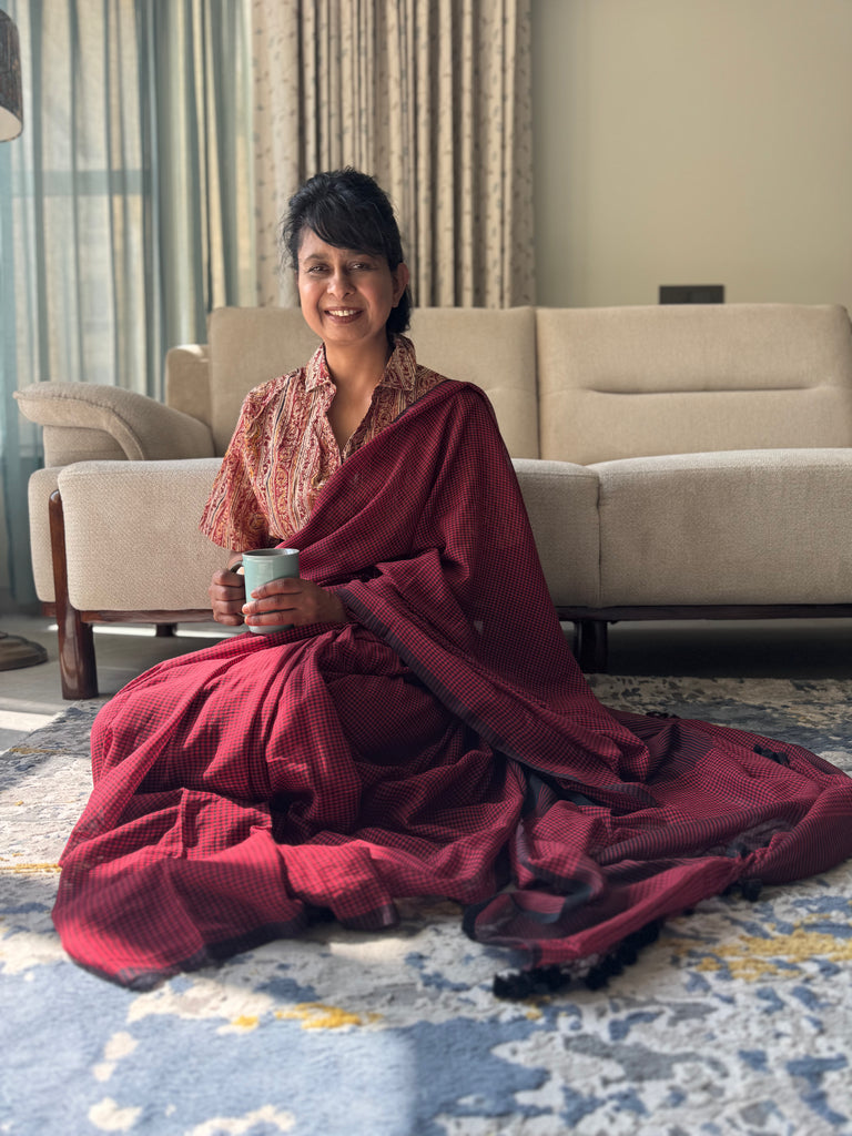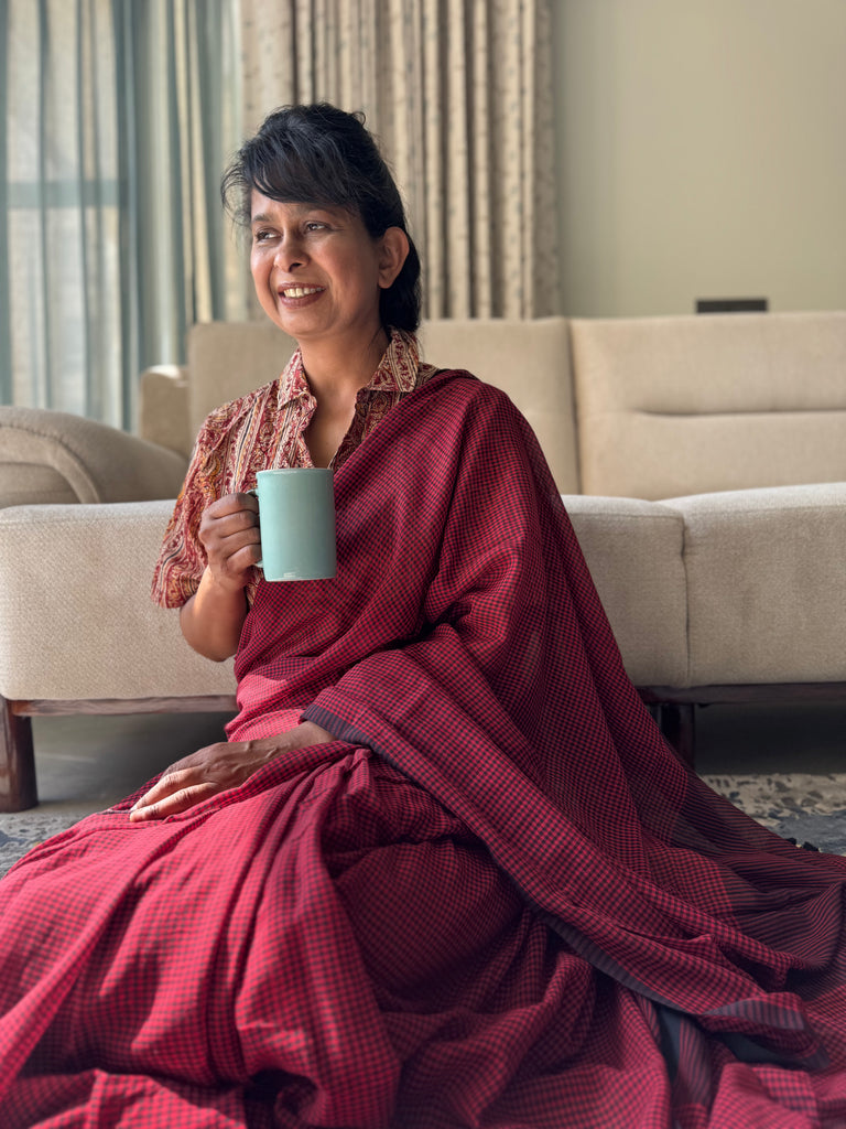Sukoon Handloom Saree Collection — crafted in an extremely soft, buttery fabric that brings back the comforting nostalgia of the sarees our daadis and nanis wore while gracefully managing their entire day. Light, breathable, and effortless, these sarees carry that same timeless comfort. Each saree is thoughtfully paired with delicate pastel block-printed blouse pieces, adding a refined, contemporary touch — perfect for the modern working woman who values heritage with quiet luxury.