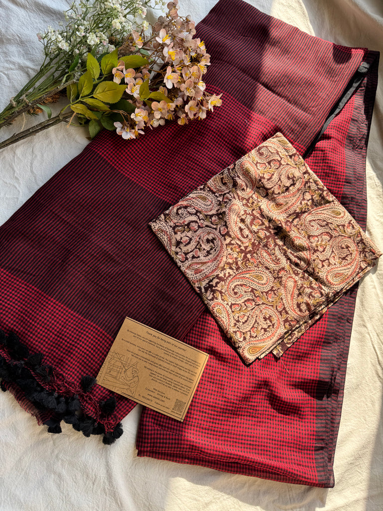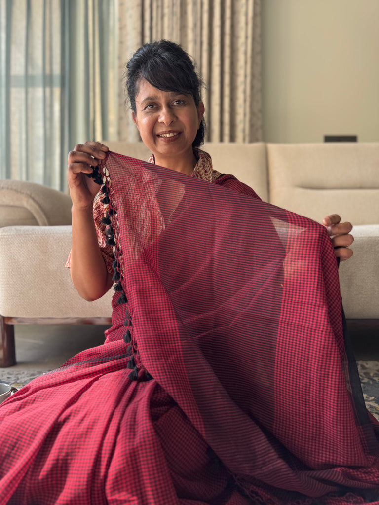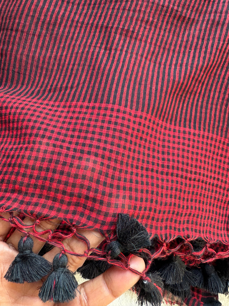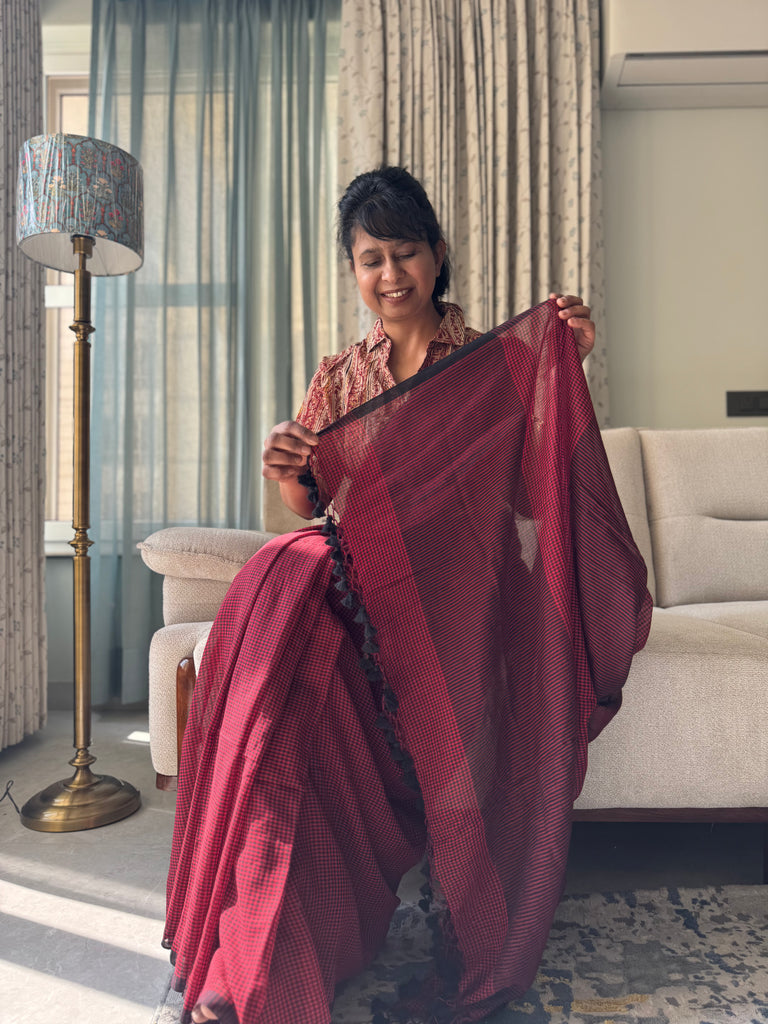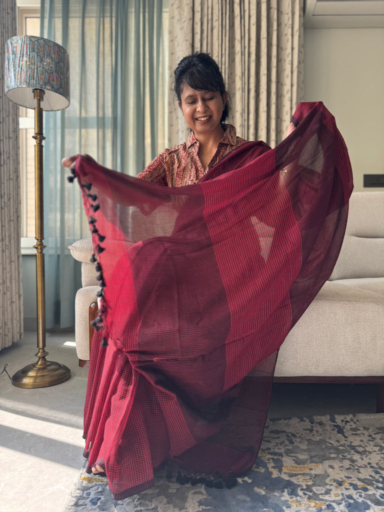 Handloom cotton saree from West Bengal cluster . Comes with hand made tassels on pallu.